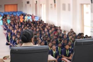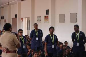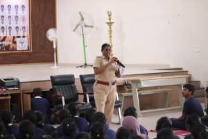 Police officials led by Mrs. Rathna Paul Shanthi, Inspector of Police, Tenkasi (Cyber Security Special Branch), conducted an engaging session guiding students on cybercrime prevention, responsible social media use, and essential soft skills.