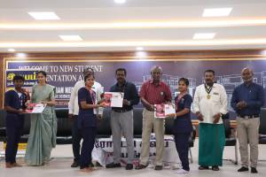 S. Thangapazham Medical College of Naturopathy and Yogic Science Research Centre is known for providing education in naturopathy and yoga. It was instituted by the Thiru K. Subramania Nadar-Vadivoo Ammal Educational Trust in 2020 and is noted as the first NABH-accredited naturopathy college in Tamil Nadu. The events shown, where students and faculty are receiving awards or certificates, are typical of an academic orientation program designed to welcome new students and perhaps acknowledge outstanding achievements or community initiatives like “Project Punch.”